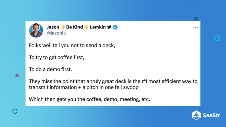 So how can you make your pitch deck better? Well, here’s what I love, that I don’t see enough. That makes a good pitch and deck … great.