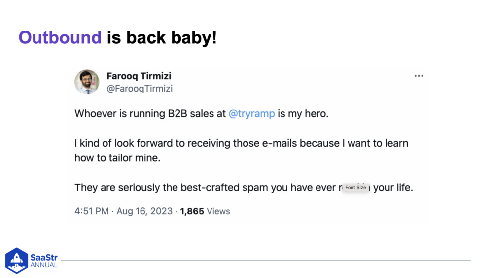 As Guillaume Cabane, co-founder of HyperGrowth Partners, pointed out, over the past ten years, the outbound channel for emails and calls has been on a downward performance trend because people were desensitized. With the arrival of AI and LLMs, the quality of content is better, so performance and open rates on automated outbound have gone up. In the tweet above, Guillaume found someone saying outbound from Ramp were the best emails ever, and they’re fully automated. No humans involved.