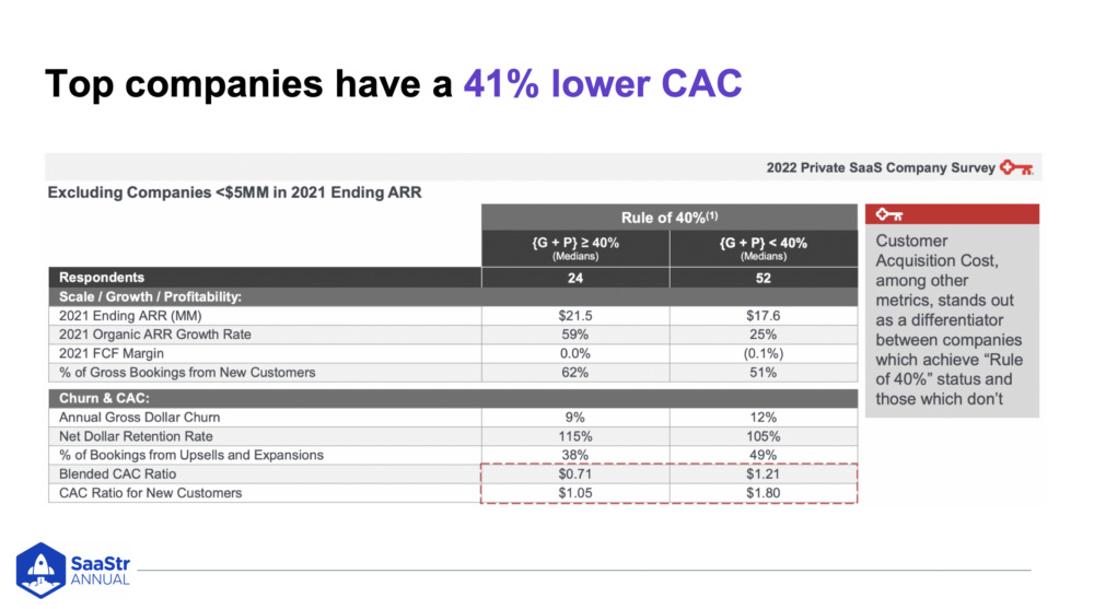 For context to kick us off, some of the top SaaS companies have 41% lower CAC than the rest. The data above shows it’s a customer acquisition cost on average of $1.05 vs. $1.80, which is a big difference. So, how do you achieve that? Let’s look at some examples.