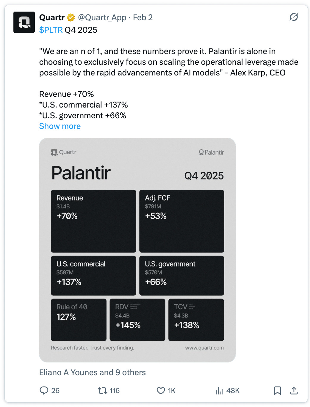 Palantir posted 127.