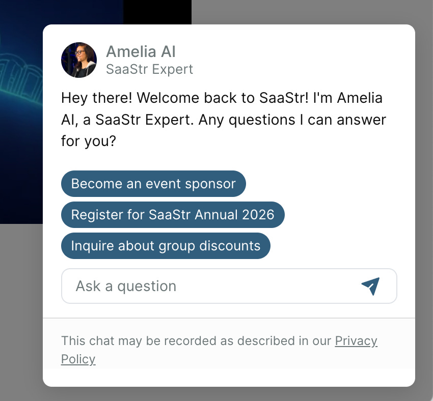 Go to SaaStrAnnual.com or SaaStrLondon.com and try the chat. Superficially, it looks like every other chat bubble (Intercom, Finn, Drift - they all look the same). But here’s what’s clever: