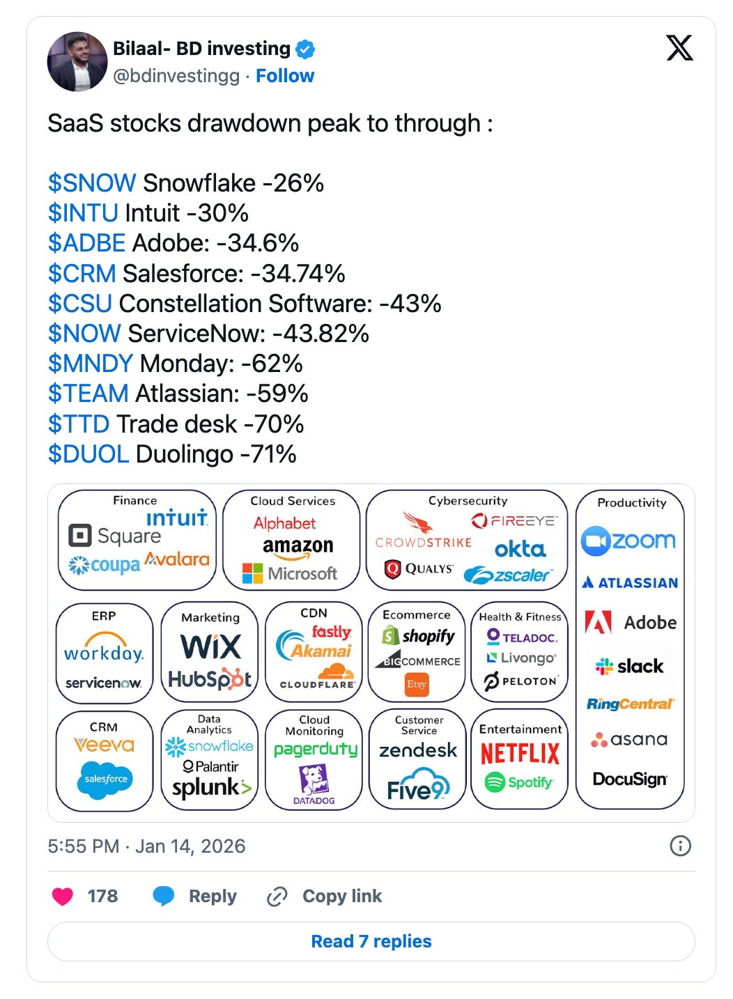 When analysts ask about growth and management talks about “seat expansion” and “price per seat increases” instead of customer acquisition, you’re watching a company hit its TAM ceiling.