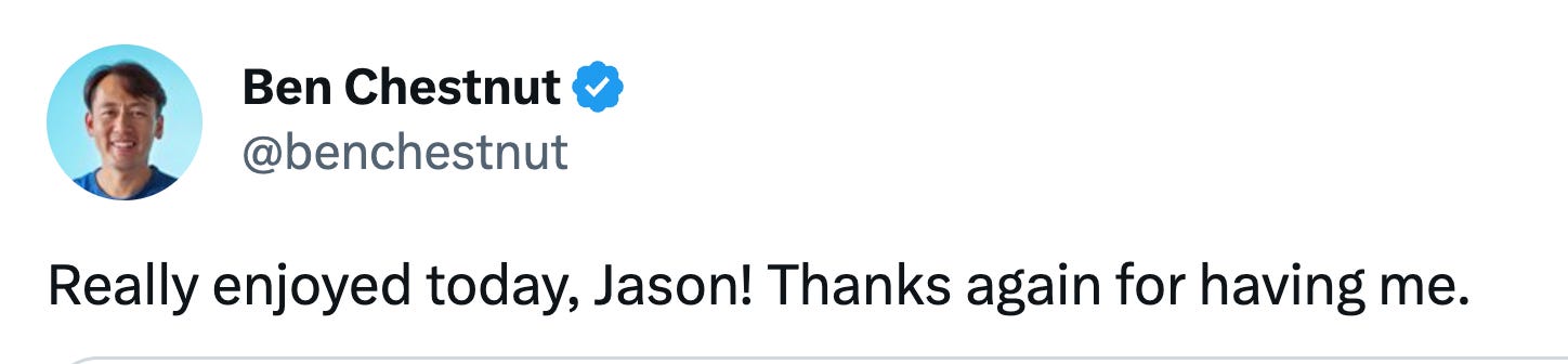 7. Bootstrapping isn’t a magical choice. No one would fund them. We hit this point above, but Ben wasn’t dogmatic about bootstrapping. They just had no choice. A bit more here.